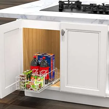 Show moreIntroducing the Simple Houseware Pull Out Cabinet Sliding Basket, a must-have addition to your kitchen or bathroom! This innovative storage solution features a pull-out construction that makes accessing items in deep cabinets effortless. Say goodbye to digging around in cluttered spaces; with this cabinet sliding basket, everything you need is just a gentle pull away. Its sleek white design not only enhances your space aesthetically but also integrates seamlessly into any decor.