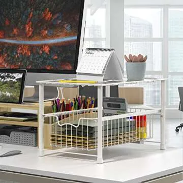 Simple Houseware Stackable Under Sink Cabinet Sliding Basket Organizer Drawer, White