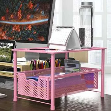 Simple Houseware Stackable Under Sink Cabinet Sliding Basket Organizer Drawer, Pink