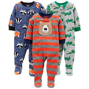Show moreIntroducing the ultimate cozy companion for nap time and sleepy nights – our adorable gripper-foot pajamas designed exclusively for toddlers by Carter's. Crafted from soft and breathable fleece, these pajamas offer warmth without the risk of overheating, ensuring your little one stays snug and comfortable throughout the cooler months. Each set features three distinct designs adorned with fun patterns and charming appliques that will delight both kids and parents alike. With playful motifs and an easy-to-use ankle-to-chin zipper outfitted with a snap-over tab, dressing and undressing becomes a breeze, making nighttime routines less stressful.