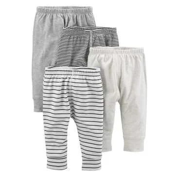Simple Joys by Carter's Baby Cotton Pants, Pack of 4, Black Mini Stripe/Grey/Light Grey/White Stripe, 0-3 Months