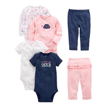 Show moreDiscover the ultimate 6-piece outfit set designed to keep your little one stylish and comfortable! This delightful collection features a combination of mixed-length bodysuits and coordinating pants, perfect for any casual occasion or playtime adventure. The set includes two long sleeve bodysuits and two short-sleeve options, giving your child versatility in their wardrobe. The pink bottoms boast charming ruffle details, adding a touch of femininity that will surely delight parents and kids alike.