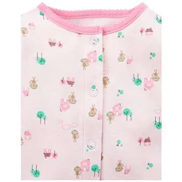 Show more Welcome to comfort and style! The Simple Joys by Carter's Baby Girls' Cotton Snap Footed Sleep and Play set combines delightful designs with unparalleled practicality, offering everything you need for your little one's day-to-day adventures. Each pack comes with two charming one-pieces, featuring a cute mint green owl and a cheerful pink monkey print that your baby will adore. Crafted from **100% soft cotton**, these outfits guarantee all-day comfort whether it's time for a nap or a playdate. The **versatile design** celebrates both leisure and activity, designed to fit snugly yet securely around your baby, making it perfect for every occasion. Ideal for ages 3-6 months, this set will quickly become a staple in your baby's wardrobe.