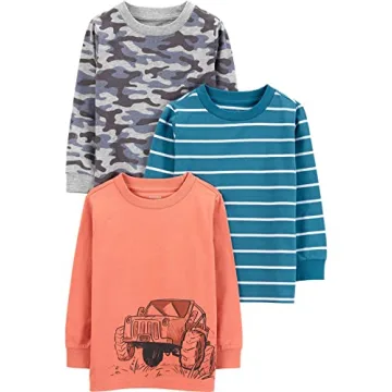 Simple Joys by Carter's Boys 3-Pack Long Sleeve Shirts - Fun Camo, Monster Trucks & Stripes