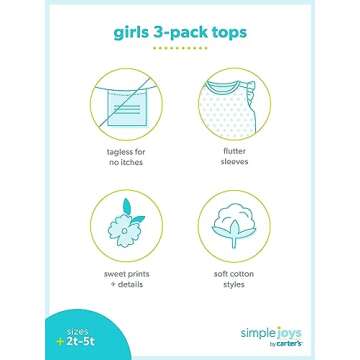 Simple Joys by Carter's Girls' Short-Sleeve Shirts and Tops, Pack of 3, Blue Stripe/White Floral/Yellow, 2T