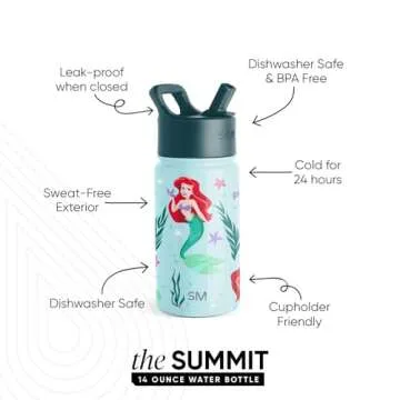 Simple Modern Disney The Little Mermaid Ariel Kids Water Bottle with Straw Lid | Reusable Insulated Stainless Steel Cup for School | Summit Collection | 14oz, The Little Mermaid Ariel's Treasures
