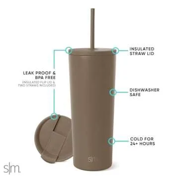 Simple Modern Insulated Tumbler with Lid and Straw | Iced Coffee Cup Reusable Stainless Steel Water Bottle Travel Mug | Gifts for Women Men Her Him | Classic Collection | 24oz | Hazelnut
