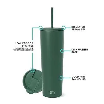 Show more Introducing the Simple Modern Insulated Tumbler with Lid and Straw, your ultimate companion for beverages on-the-go! This stunning 28oz tumbler is designed with both functionality and style in mind, perfect for anyone looking to keep their drinks at the ideal temperature for hours. Its state-of-the-art double wall insulation ensures that your iced coffee stays refreshingly cold, while your hot drinks remain piping hot. Manufactured from premium 18/8 stainless steel, this tumbler is not only sturdy and durable but also resistant to any rust or damage, making it ideal for daily use. Enjoy the perfect blend of practicality and aesthetics with its sleek tapering shape, allowing it to fit effortlessly into cupholders without compromising on functionality!