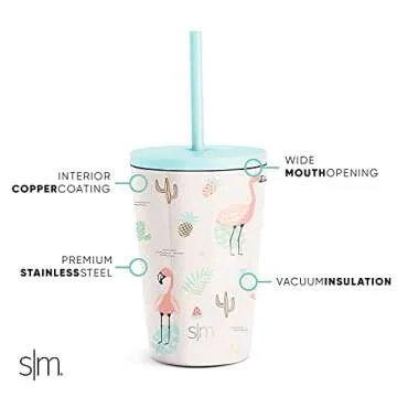 Simple Modern Toddler Cup with Lid and Silicone Straw | Kids Water Bottle Tumbler Insulated Stainless Steel Thermos | Classic Collection | 12oz, Pink Flamingo