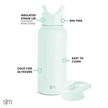 Simple Modern Water Bottle with Straw and Chug Lid Vacuum Insulated Stainless Steel Metal Thermos Bottles | Reusable Leak Proof BPA-Free Flask for Gym Sports | Summit Collection | 32oz Retro Mint