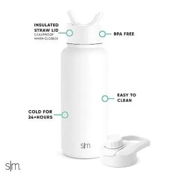 Simple Modern Water Bottle with Straw and Chug Lid Vacuum Insulated Stainless Steel Metal Thermos Bottles | Reusable Leak Proof BPA-Free Flask for Sports | Summit Collection | 32oz, Winter White