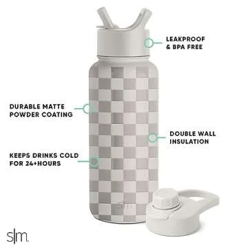 Show more If you're on the search for an exceptional hydration solution that combines style and functionality, look no further than the Simple Modern Water Bottle with Straw and Chug Lid. This stunning 32oz Summit Water Bottle in a chic checkered print is more than just a pretty accessory; it’s designed to keep your drinks at the perfect temperature for hours. Whether you're heading to the gym, hitting the trails, or simply enjoying a sunny day out, this bottle will ensure you stay refreshed and fashionable. The durable stainless steel build offers a lightweight yet robust experience, catering perfectly to busy lifestyles.