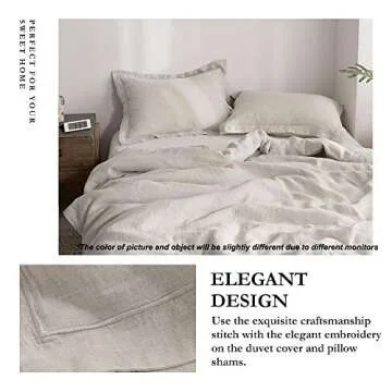 Simple&Opulence 100% Linen Duvet Cover Set with Embroidery Washed - 3 Pieces (1 Duvet Cover with 2 Pillow Shams) with Button Closure Soft Breathable Farmhouse - Linen, King Size
