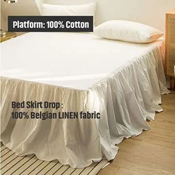 Simple&Opulence Belgian Linen Bed Skirt with Classic 16 inch Tailored Drop Dust Ruffle, Easy Fit Breathable Premium Natural Flax- Pleated White,King
