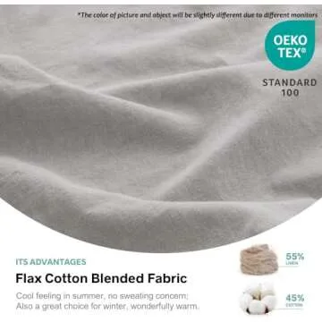 Show moreTransform your sleeping experience with the Simple&Opulence Belgian Linen Sheet Set, a perfect blend of luxury and functionality that embodies modern farmhouse style. Crafted from an exquisite mix of 55% Euro Flax and 45% Cotton, this premium-quality fabric showcases a sophisticated touch and a cozy feel. Weighing in at 160 GSM, this sheet set is designed to remain soft and breathable while being durable enough to withstand the test of time. Our products are certified by the OEKO-TEX Standard 100, ensuring they are eco-friendly and safe for your family and the environment. Experience the unrivaled comfort as you envelop yourself in this linen-cotton blend, which combines the coolness of linen with the softness of cotton, perfect for year-round use.
