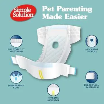 Simple Solution Disposable Dog Diapers for Female Dogs, True Fit, Absorbent, Leak Proof with Wetness Indicator, XL Puppy & Doggie Period Pad and Pee Diaper, For Large Pets, 18-27 Inch Waist, 30 Count