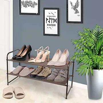 Simple Trending 2 Tier Stackable Shoe Rack, Fabric Shoe Shelf Storage Organizer, Bronze