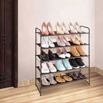 Simple Trending 5 Tier Stackable Shoe Rack, Expandable & Adjustable Fabric Shoe Shelf Storage Organizer, Bronze