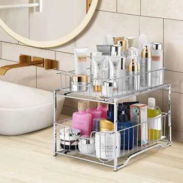 Simple Trending Stackable 2-Tier Vertical Bathroom Storage Under Sink Cabinet Organizer, Toilet Vanity Organizer Drawers, Chrome