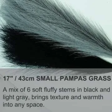 Show more Discover the exquisite Faux Pampas Grass Decor, an elegant addition to your home that brings the beauty of nature indoors. Each set includes 6 stems measuring 17 inches (43 cm) in length, crafted in two delightful natural tones: Black and Gray. These tones are perfect for mixing and matching, allowing you to create stunning floral arrangements that reflect your personal style.