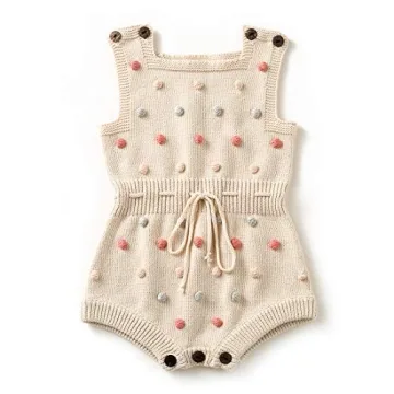 Show moreThis charming Baby Girl Knitting Romper is the perfect addition to your little one's wardrobe. Crafted from high-quality fabric, this romper offers a soft, comfortable, and breathable fit, making it ideal for daily wear. Designed with the utmost attention to detail, it features an adorable waist tie and unique wood snap closures, ensuring not just style but also practicality. The standout aspect of this romper is its cute pom pom embellishments that add a playful touch, making your girl the center of attention wherever she goes.
