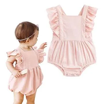 Show moreIntroducing the exquisite Simplee Kids Baby Girls Handmade Solid Color Romper, designed to enhance your little one's charm this spring. This stylish romper is made from a premium blend of 45% Cotton and 55% Linen, ensuring your baby's comfort and breathability while providing durability against wear and tear. Its delicate design features sweet short ruffle sleeves and convenient buttons at the crotch, making dressing and diaper changes a breeze.