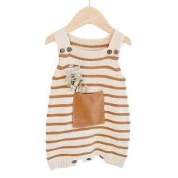 Simplee kids Baby Girls Knit Rompers Newborn Baby Striped Sleeveless Jumpsuit Outfits