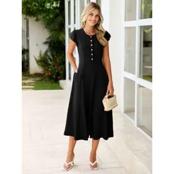 With its adorable flutter sleeves and classic round neck, the dress exudes a casual charm that is perfect for summer and spring occasions. The flowy hem adds an element of modesty and grace, ensuring you feel comfortable while still looking chic. Plus, who doesn’t love a dress with pockets? This one comes with handy side pockets, ideal for keeping your essentials close at hand.