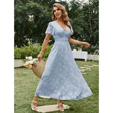 If you’re looking for a standout piece that effortlessly combines elegance with a touch of bohemian flair, look no further than the Simplee Women's Boho Floral V Neck Short Sleeve Formal Maxi Ruffle Dress. This stunning outfit features a vibrant floral print that encapsulates the spirit of summer, making it perfect for various occasions. With a low V-neckline and soft short sleeves, this dress offers both style and comfort. The smocked elastic waist ensures a flattering fit for every body...