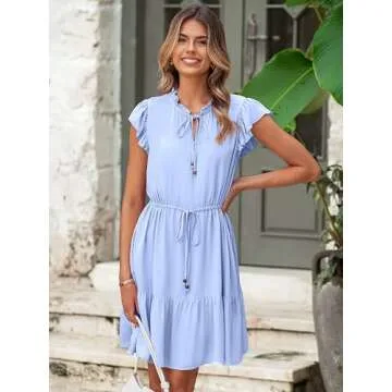 Step out in radiant style this summer with the Simplee Womens Summer Dress 2025 Ruffle Short Sleeve Floral Boho Dress. Crafted from a luxurious blend of materials, this dress combines comfort and flair with its 86% viscose and 14% polyamide floral print and 70% modal and 30% lyocell solid color options. The skin-friendly fabric feels soft and silky against your skin, making it the perfect companion for those warm days.