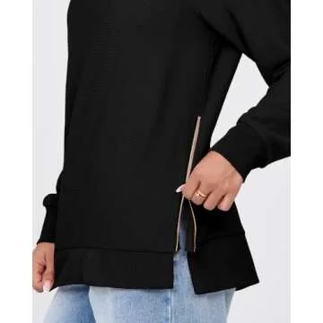 Show moreIntroducing the SimpleFun Casual Sweatshirt for Women, a versatile and chic pullover that stands out in functionality and style! Made from a premium blend of rayon and polyester, this sweatshirt provides a comfortable texture perfect for those chilly fall and winter days. With a midweight construction and ribbed fabric, it ensures softness while keeping you cozy. Designed with a blend of trend and practicality, this sweatshirt features unique side zippers that allow for an adjustable fit, while the dropped back hem offers enhanced coverage and a flattering silhouette.