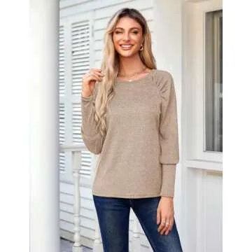 SimpleFun Long Sleeve Shirts for Women Pleated Tunic Tops Loose Fit Dressy Work Blouses 2024 Fall (Beige,L)