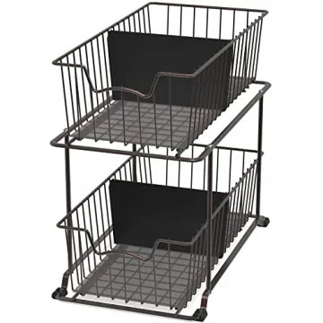 Introducing the **SimpleHouseware 2 Tier Cabinet Wire Basket Drawer Organizer** in a stunning bronze finish, your ultimate partner in achieving a clutter-free, organized home! Crafted from sturdy metal, this multi-functional sliding basket organizer not only boasts durability but also offers a touch of elegance to any space. With dimensions of 14''D x 8''W x 12.75''H, it fits perfectly into various areas, such as cabinets, pantries, and even under sinks, making it an essential tool for optimizing...