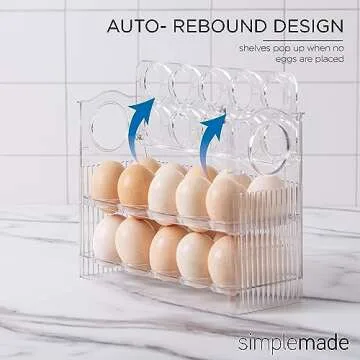 The SIMPLEMADE Egg Holder for Refrigerator Door is a remarkable solution designed to revolutionize your kitchen storage. If you're tired of digging through cluttered fridge shelves searching for your eggs, this cleverly engineered egg storage box is here to save the day. With its innovative 3-layer flip box design, this clear plastic container not only allows you to store up to 14 eggs but also offers maximum visibility, making it easy to spot your eggs at a glance. Made from high-quality,...