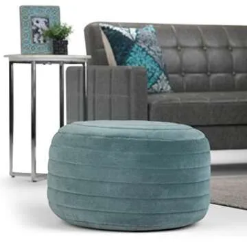 Show more Elevate your living space with this stunningly versatile stool, beautifully crafted from premium turquoise velvet cotton fabric. This product is a perfect blend of style and functionality, designed to cater to all your seating needs while flawlessly complementing your home decor. What sets this stool apart is its dense polystyrene bead filling, which not only provides exceptional support but also ensures the shape remains intact over time, offering durability and comfort in one delightful package.
