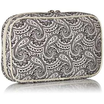 Furthermore, the thoughtfully implemented padding delivers an extra layer of protection for your valuables without adding unnecessary bulk. As a cherry on top, its elegant black and white paisley design promotes aesthetic allure, enriching your travel gear with a touch of sophistication. Users have consistently praised this jewelry case for its clever and efficient organization, declaring it among the best small travel jewelry cases available.