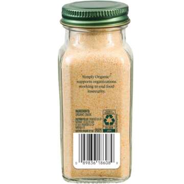 Show more Discover the true essence of flavor with the Simply Organic Onion Powder, a culinary staple that elevates your favorite dishes with its deliciously pungent taste. This organic powder is not just a substitute for fresh onions; it's a revolutionary ingredient that brings intense onion flavor without the hassle of chopping and peeling. Perfectly suited for enhancing seasoning blends, dips, sauces, meats, and even canned and frozen foods, this onion powder transforms the ordinary into the extraordinary.