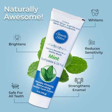 Simply Silver Toothpaste - Nano Hydroxyapatite & Colloidal Silver Natural Toothpaste & Oil Pull, Fluoride Free, Remineralizing & Sensitive Teeth New Formula, 4 oz (Mint)