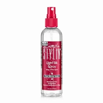 Show more Simply Stylin' Light Silk Hair Spray is revolutionizing the way we care for both natural hair and synthetic wigs! Designed specifically as an anti-frizz silicone heat protectant, this versatile hair spray provides essential defense against damaging heat while ensuring your locks look silky, vibrant, and healthy. Whether you're working with your own hair or your favorite wigs, this 4 fl oz bottle helps to tame unruly strands, adding a touch of shine and softness that is simply irresistible.