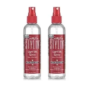 Show more Introducing the Simply Stylin Light Silk Spray, a revolutionary hair product designed specifically for avid wig wearers, providing essential protection from heat and humidity while ensuring a beautiful, natural look. This remarkable spray combines the power of pure silicone to shield your hair from damaging environmental factors. It's packaged conveniently in a 4 oz bottle and sold as a Pack of 2, making it perfect for those who want to stock up on this must-have essential.
