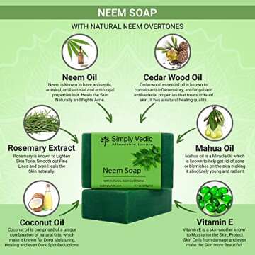 Simply Vedic 6-Pack Soap Bar Collection For Body, Hand, Face; Holy Basil (Tulsi) (3Pc), Neem (3Pc). Cold Pressed Handmade For Men & Women (3.5 Oz. X 6)