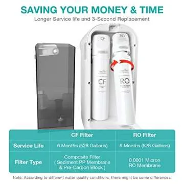 These filters are essential for maintaining the performance of your SimPure RO water filtration system. It is recommended to replace the SimPure Filter Cartridge every 6 months, ensuring optimal filtration efficiency. The inclusion of a RO Smart Indicator Light serves as a reminder for filter replacement, allowing you to care for your health without the stress.