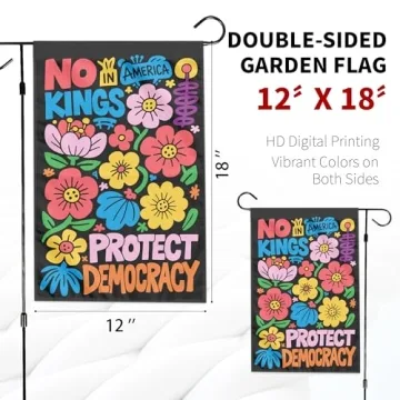 Show moreIntroducing the **Since 1776 No Kings in Ameri-ca Flag**, a perfect blend of quality and vibrant design that transforms your outdoor space into a statement of freedom and personality. Made from high-quality polyester, this **12X18 inch** flag is specifically designed for outdoor use, standing up to various weather conditions while displaying bold colors that won't fade easily. Its unique floral pattern isn’t just beautiful but also symbolizes unity amidst diversity, making it suitable for various celebrations and everyday decor.