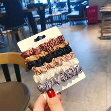 Sinen 6Pcs Premium Satin Elastic Hair Bands, Scrunchy Ponytail holder, Hair Ties Ropes Scrunchies for Women or Girls Accessories