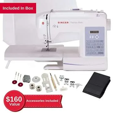 Show moreDiscover the perfect fusion of functionality and elegance with the SINGER FASHION MATE 5560 Computerized Sewing Machine. Designed to cater to both novice seamstresses and seasoned crafters, this versatile sewing machine offers a stunning array of 203 stitch applications, allowing you to express creativity across various projects. Its advanced features include a simple one-step buttonhole for flawless results on all your garments, while the innovative automatic needle threader makes setup a breeze—perfect for those who value efficiency. The SINGER 5560 comes equipped with a comprehensive accessory kit and a handy hard cover, ensuring durability and protection when not in use.