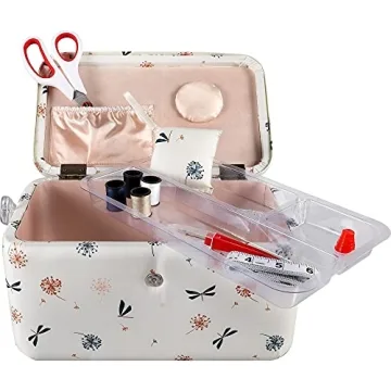 Introducing the exquisite SINGER Large Premium Sewing Basket with Notions, a must-have for anyone passionate about sewing, whether you're a novice or an experienced artisan. This decorative sewing kit features a delightful Anthriscus flower and dragonfly print, elevating your crafting experience while keeping all your essential tools neatly organized. Measuring at 11.6 inches wide, 6.9 inches deep, and 6.6 inches tall (excluding the handle), this roomy yet...