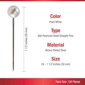 Show moreIntroducing the Singer Pearlized Ball Head Straight Pins, Size 24 - a must-have tool for any serious crafter, sewist, or DIY enthusiast! This comprehensive set includes a total of 120 meticulously crafted white pearl head pins designed to elevate your crafting and sewing projects. Made from premium nickel-plated steel, these pins ensure exceptional durability and rust prevention, making them ideal for various applications, including sewing, quilting, and delicate fabric creations.