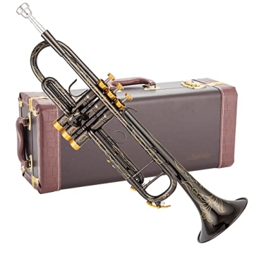 Show moreThe Singer's Day SDTR-2019B Heavy Duty Black Nickel and Gold Trumpet is a true masterpiece for musicians who seek both beauty and performance. Crafted with whole body hand engraving of delicate floral patterns, this trumpet not only captivates with its aesthetic appeal but also represents a commitment to meticulous craftsmanship. The elegant black nickel and gold finish sets it apart from other trumpets, making it a stunning choice for concerts or formal events. With its robust construction and sophisticated design, this instrument is designed to resonate with both beginners and seasoned professionals alike.