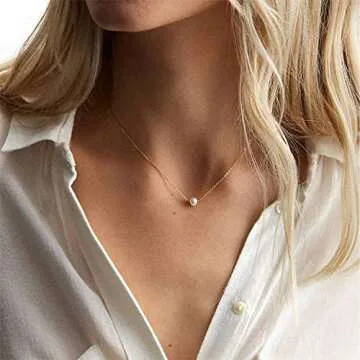 Single Pearl Dainty Necklace for Women - 14K Gold Plated with White Pearl Charm