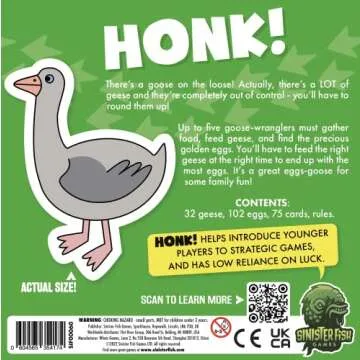 Show moreIntroducing the Sinister Fish Games HONK! – the ultimate family game that effortlessly blends laughter, strategy, and invaluable learning right in your living room! This engaging game not only entertains both kids and adults, but it also enhances critical thinking skills by teaching important concepts like forward planning and strategic decision-making. Its bright, colorful design showcases chunky cardboard geese, captivating players of all ages and serving as the perfect choice for your next family game night.